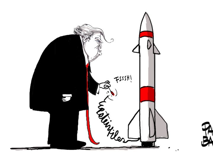 Follow me Editorial e ilustración Paco Baca. Trump en camisa de once varas: Irán, Netanyahu y el...
