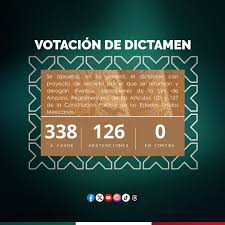 El documento, enviado al Ejecutivo Federal para sus efectos constitucionales, deriva de una iniciativa presentada por la presidenta de la República. Se avaló en lo general con 338 a favor, 126 en contra y cero abstenciones y, en lo particular, por 323 a favor, 123 en contra y cero abstenciones.