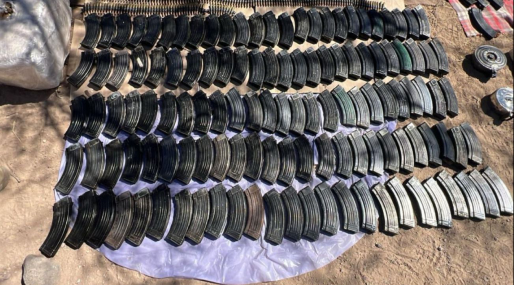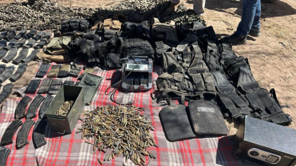 El primer operativo se registró en un camino de terracería cercano al paraje conocido como El Quelitillo, donde el personal operativo localizó ocultos entre la maleza cuatro fusiles AK-47, una ametralladora calibre 7.62×51, 226 cargadores abastecidos, mil 131 cartuchos útiles, chalecos balísticos y un paquete con marihuana.