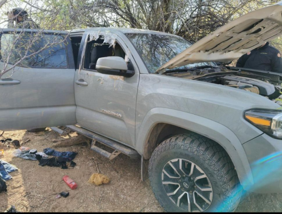 Al interior de la vagoneta Kia, conducida por el detenido, se localizaron cinco fusiles AK-47, una pistola calibre 9 milímetros, 17 cargadores abastecidos y chalecos balísticos; además, se aseguró una pick up Toyota Tacoma, modelo 2023, la cual cuenta con reporte de robo en Estados Unidos de América.