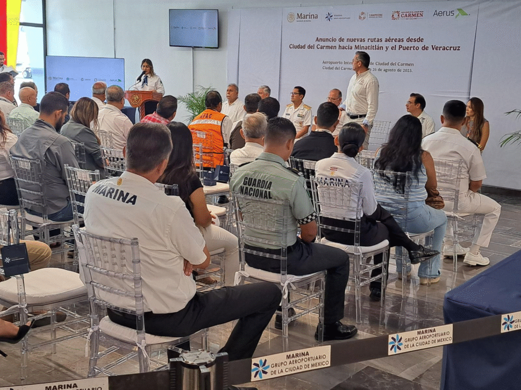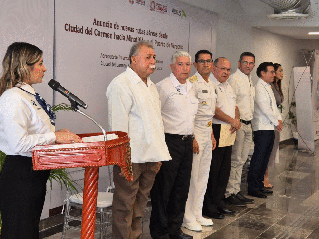 Grupo Aeroportuario Marina, el Gobierno de Campeche y la aerolínea Aerus anunciaron el inicio de operaciones de dos nuevas rutas aéreas que conectarán a Ciudad del Carmen con Minatitlán y el Puerto de Veracruz a partir del próximo 1o de septiembre, lo que permitirá fortalecer la conectividad regional en el sureste del país