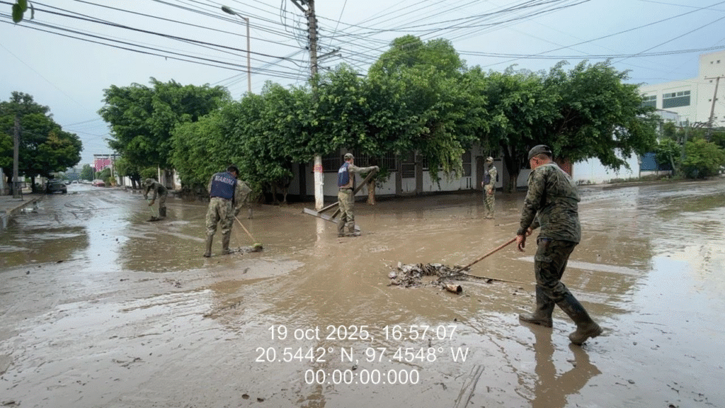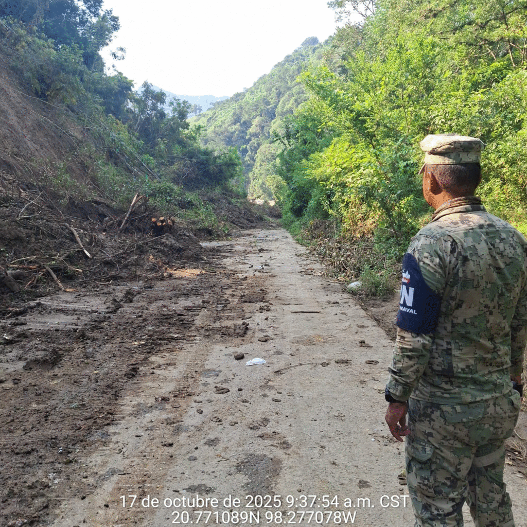 Ciudad de México.- La Secretaría de Marina, a través de la Armada de México, en el marco de la aplicación del Plan Marina, informa que continúa realizando acciones de apoyo a la población civil afectada por los recientes fenómenos meteorológicos, en los estados de Veracruz, Puebla, Hidalgo y San Luis Potosí, con especial énfasis en las labores de limpieza, desazolve y liberación de vialidades, así como la operación de centros de acopio en diversas regiones del país.
