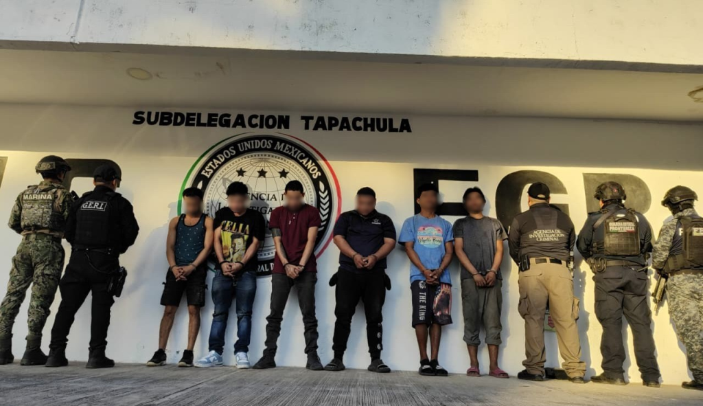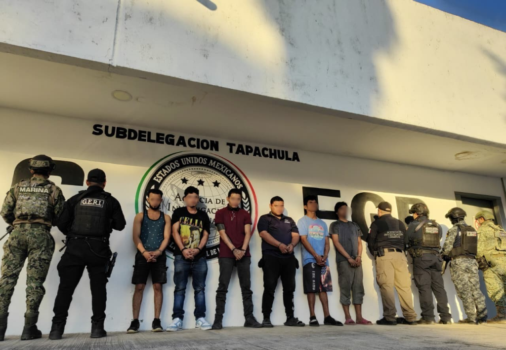 Marina en coordinación interinstitucional realizó la detención de diez presuntos infractores de la ley y el aseguramiento de presunta droga en Tapachula, Chiapas