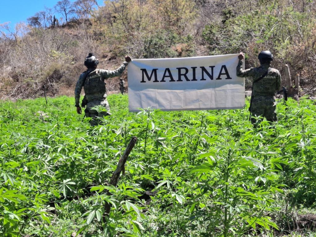 En Ixtlán del Río, Nayarit, en los poblados Los Mezquites y Cacalután, elementos de Semar, derivado de información de inteligencia, localizaron y erradicaron cuatro plantíos de marihuana en un área de 8 mil 850 metros cuadrados, con aproximadamente 153 mil 500 plantas de marihuana.