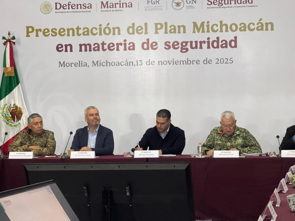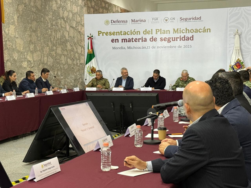 Ciudad de México.- La Secretaría de Marina a través de la Armada de México informa que, hoy el Almirante Raymundo Pedro Morales Ángeles, secretario de Marina, estuvo presente durante la Presentación del Plan Michoacán, en presencia del Gobernador del Estado, el Secretario de Seguridad y Protección Ciudadana, así como otras autoridades civiles y militares de los tres órdenes de gobierno y empresarios.
