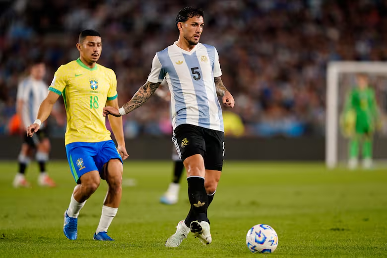 Leandro Paredes enfriando un ataque de la «Canarinha» en una noche soñada en el Monumental de Núñez.