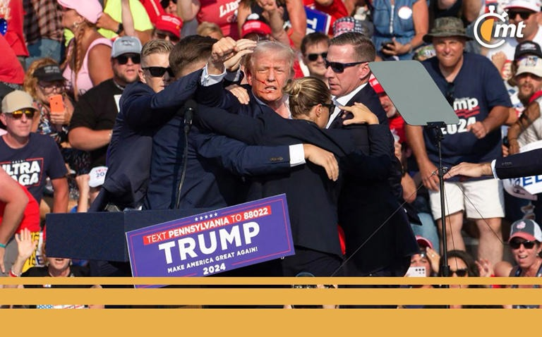 Los disparos se escucharon y se miró un Trump confundido mientras caía al piso cubriéndose el rostro.