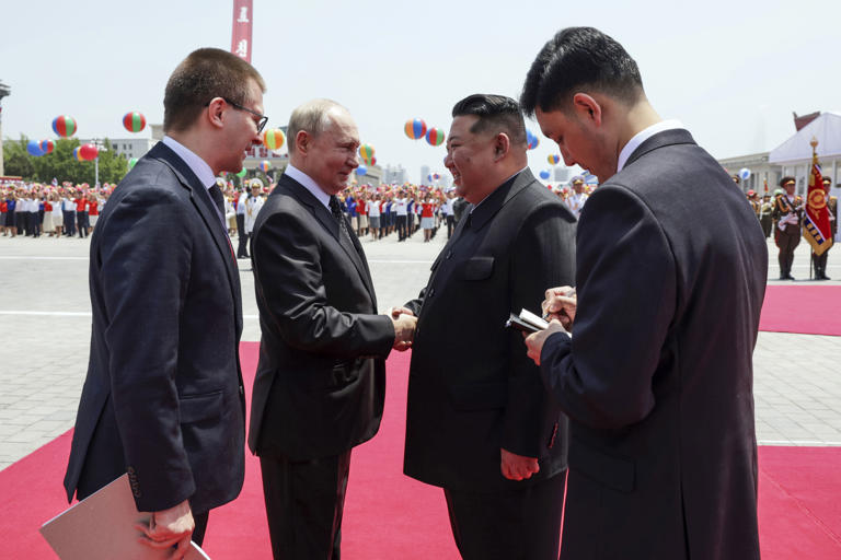 El presidente ruso Vladimir Putin y el líder norcoreano Kim Jong Un firmaron el miércoles 19 de junio del 2024 un acuerdo que promete ayuda mutua si alguno de los dos países enfrenta una «agresión», un pacto estratégico que se produce en momentos en que ambos enfrentan amenazas cada vez mayores con Occidente.